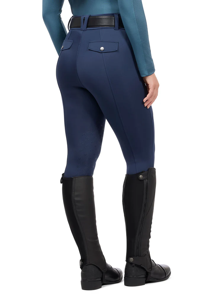 Four-way stretch fabric provides smoothing support and excellent shape retention, while UPF +50 sun protection and flexible precision-placed silicon grip knee patches ensure composed canter sets. Sleek details like a two-inch comfort waistband, belt loops, and low-profile pockets bring a polished finish to your fit.