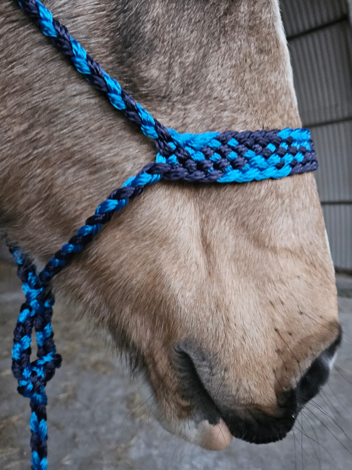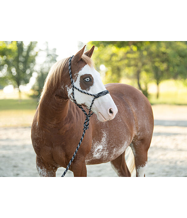 Extremely soft, braided knot rope halter with matching lead rope.